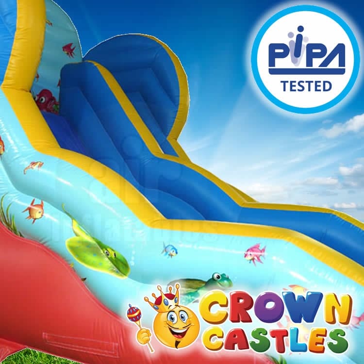 At over 22 Ft high and with a 12 Ft platform - this fantastic bouncy event slide is perfect for any summer fete, gala day or even a very big garden party if you have the room! With a fantastic array of artwork to suit all ages, sizes and gender this is sure to be hit. Safety features include single lane entry, deep platform area and extra high walls.