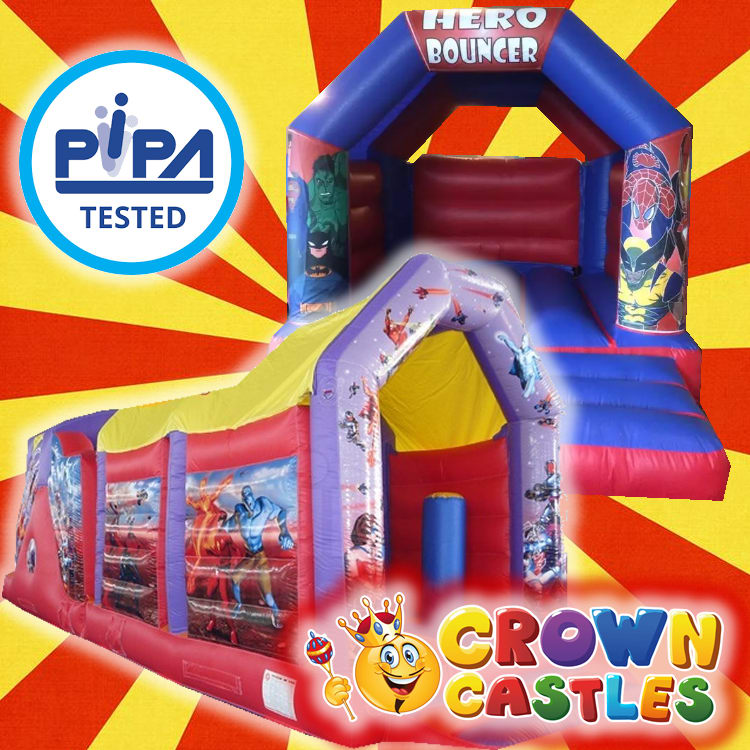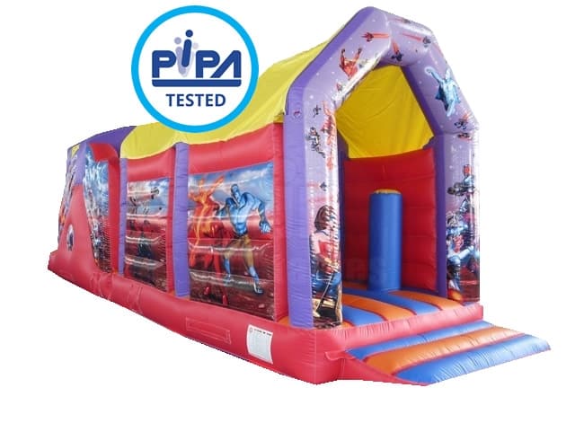 Calling all superheros!!! This action packed party package is for those serious action hero fans and will keep your guests entertained for hours. The package offers our fantastic two part Superhero Obstacle Course and our New 12 x 15 Ft Action Party Bouncer. Both units come with full rain covers to protect your heroes from the elements and P.I.P.A certificate to ensure their safety whilst in action. In addition, we'll even throw in an additional one hour over and above the standard hire times.